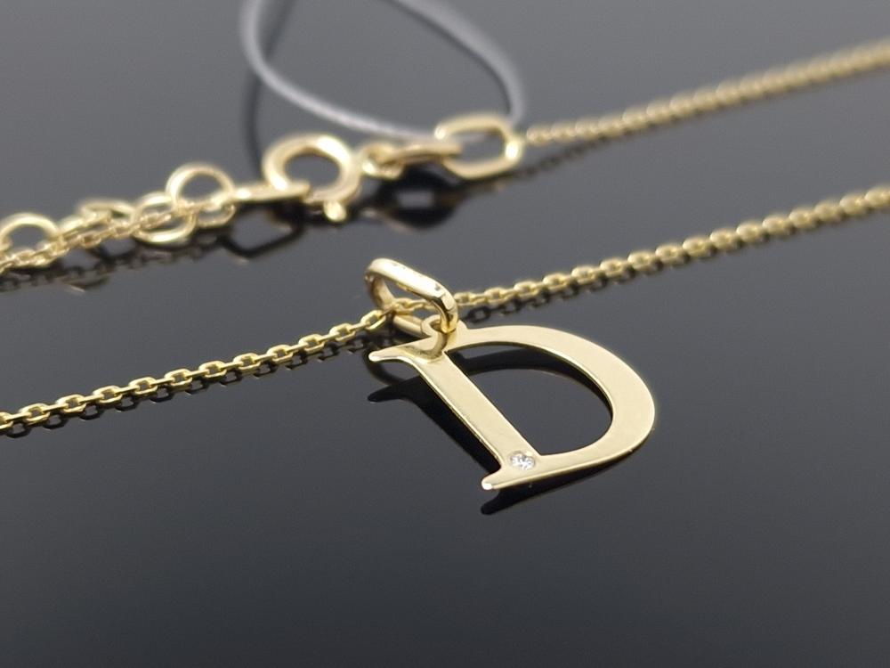 Auksinė grandinėlė su raidele D ir briliantu
