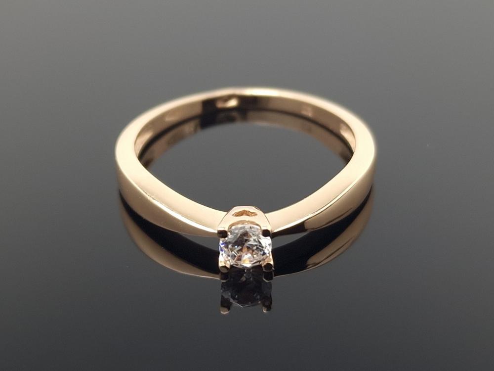Auksinis žiedas su balta akute