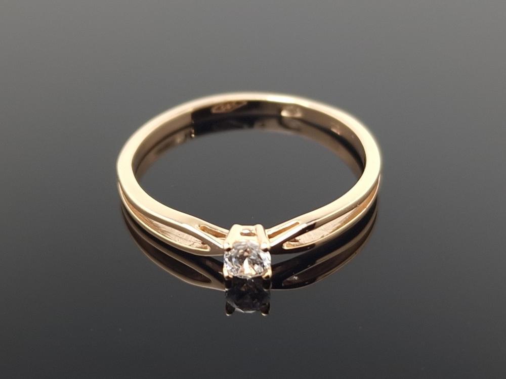 Auksinis žiedas su balta akute