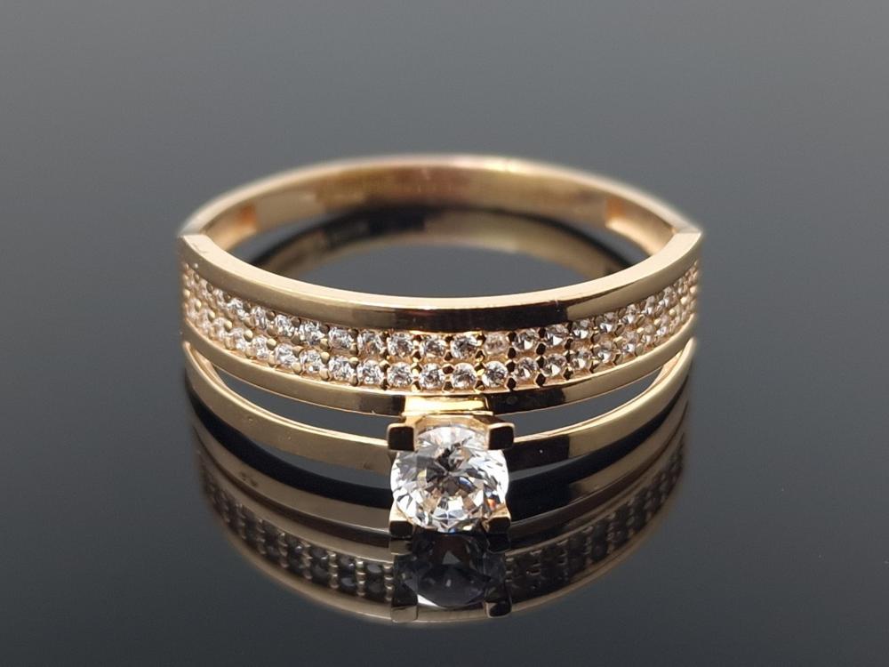 Dvigubas auksinis žiedas su akutėmis